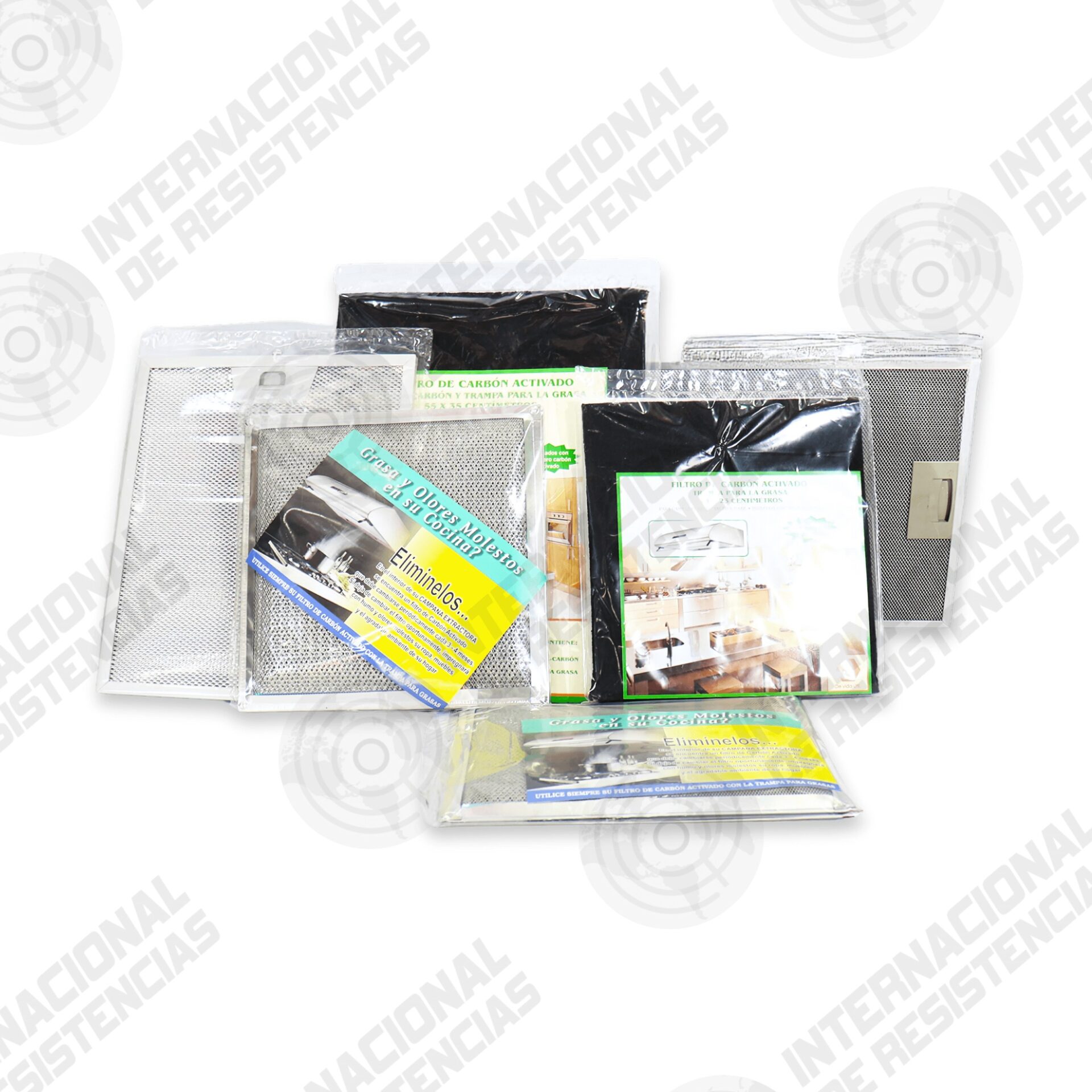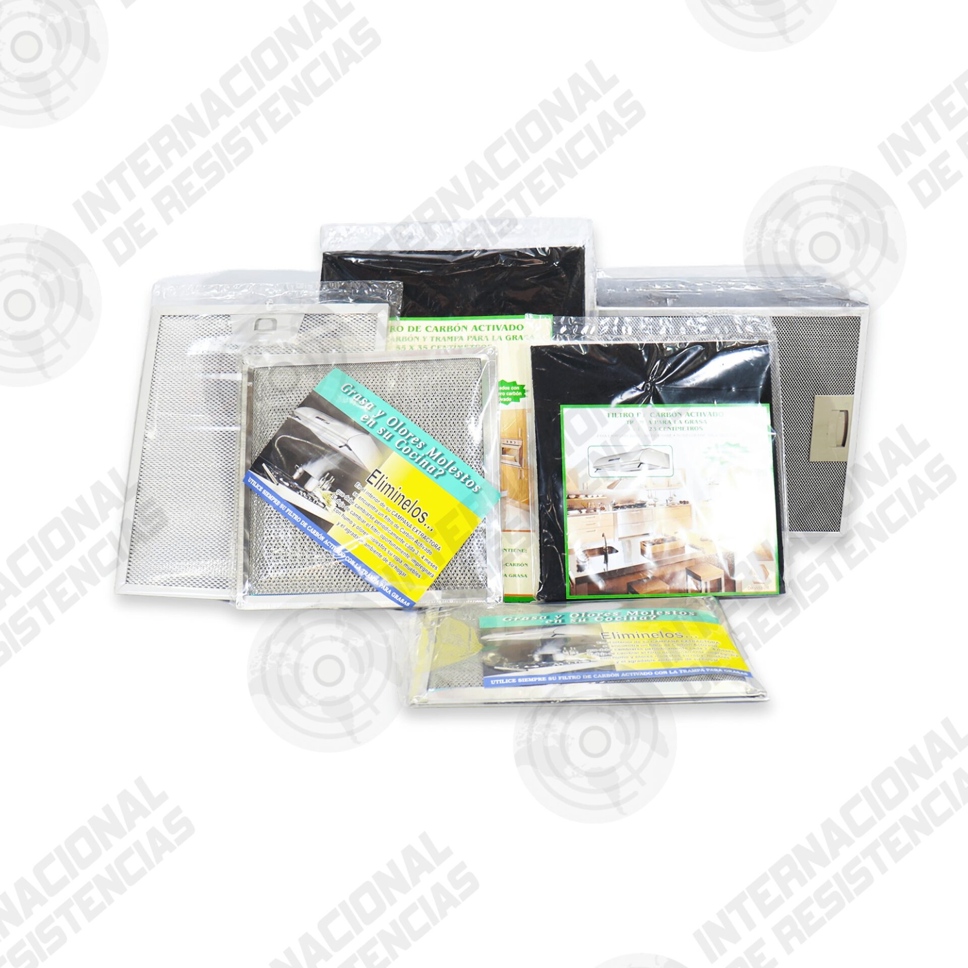 Filtros de malla metálica y carbón activado, compatibles con campanas estándar, lavables, reutilizables y disponibles en varias medidas.
