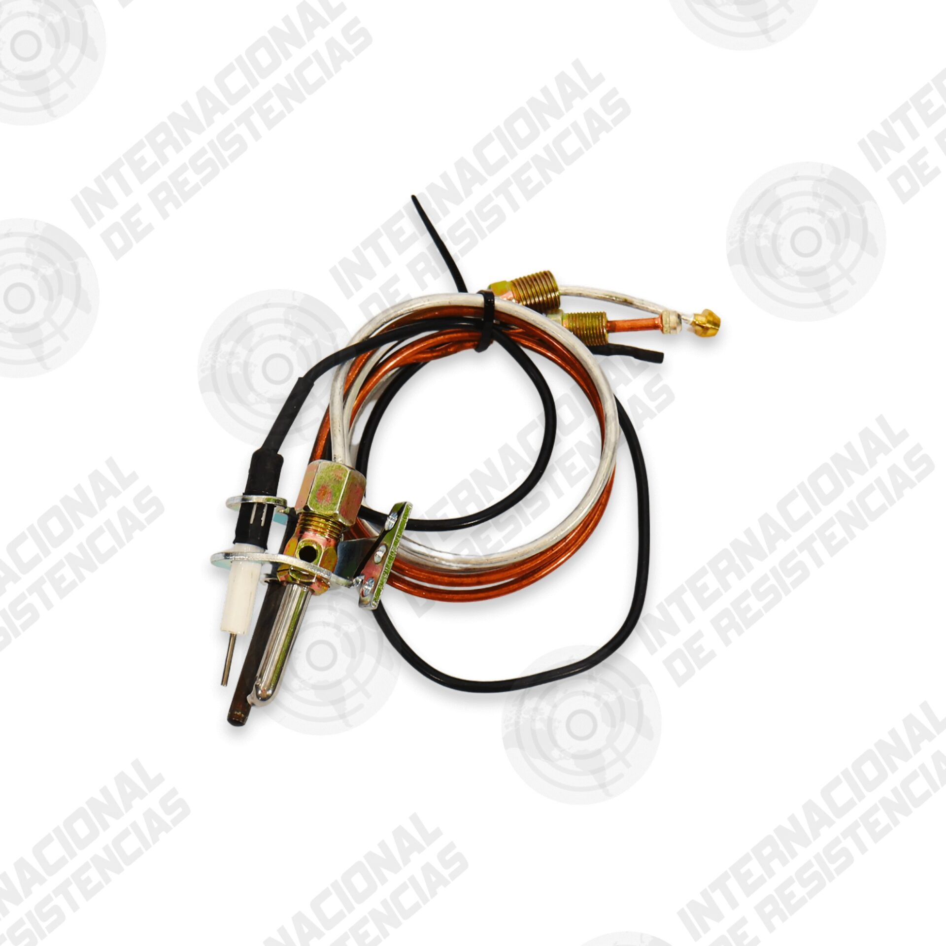 Tubo piloto 5 mm×150 mm + termopar 914 mm (20–30 mV) + electrodo 914 mm, rosca ¼″ NPT, soporte metálico, aislador cerámico.