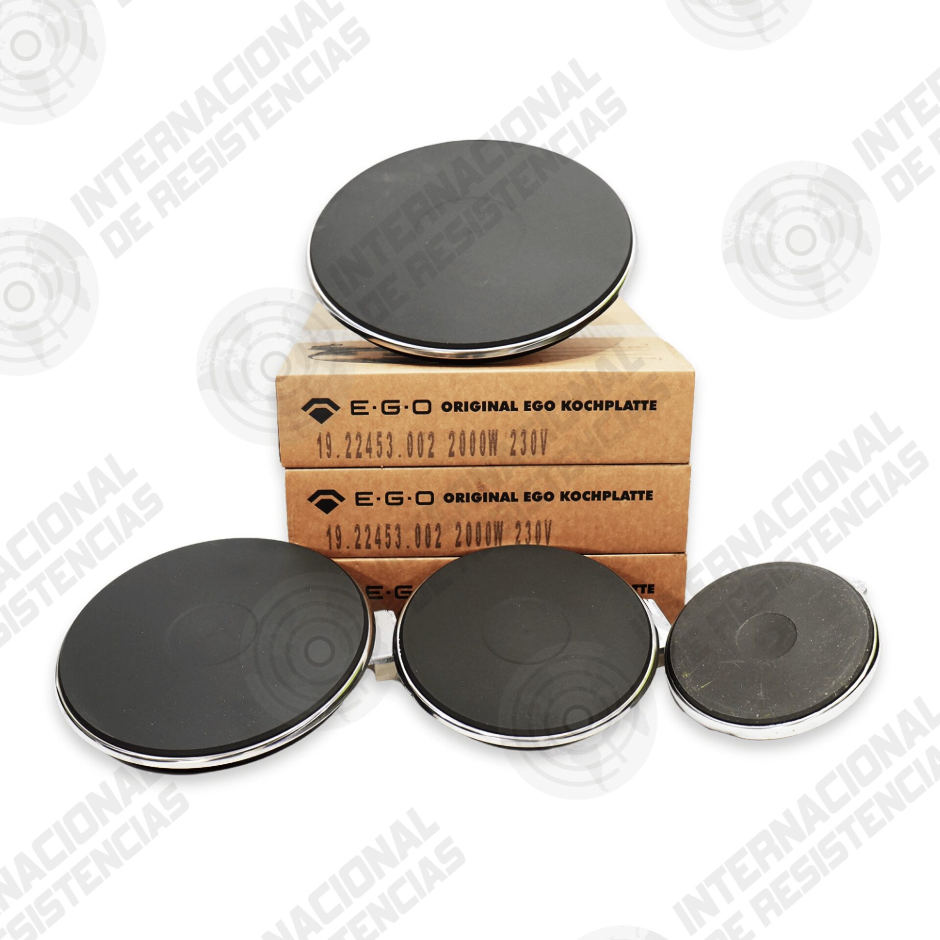 Platos E.G.O. original de 5″ a 9″ (800–2000 W). Elementos calefactores de alta durabilidad y eficiencia para estufas y cocinas eléctricas.