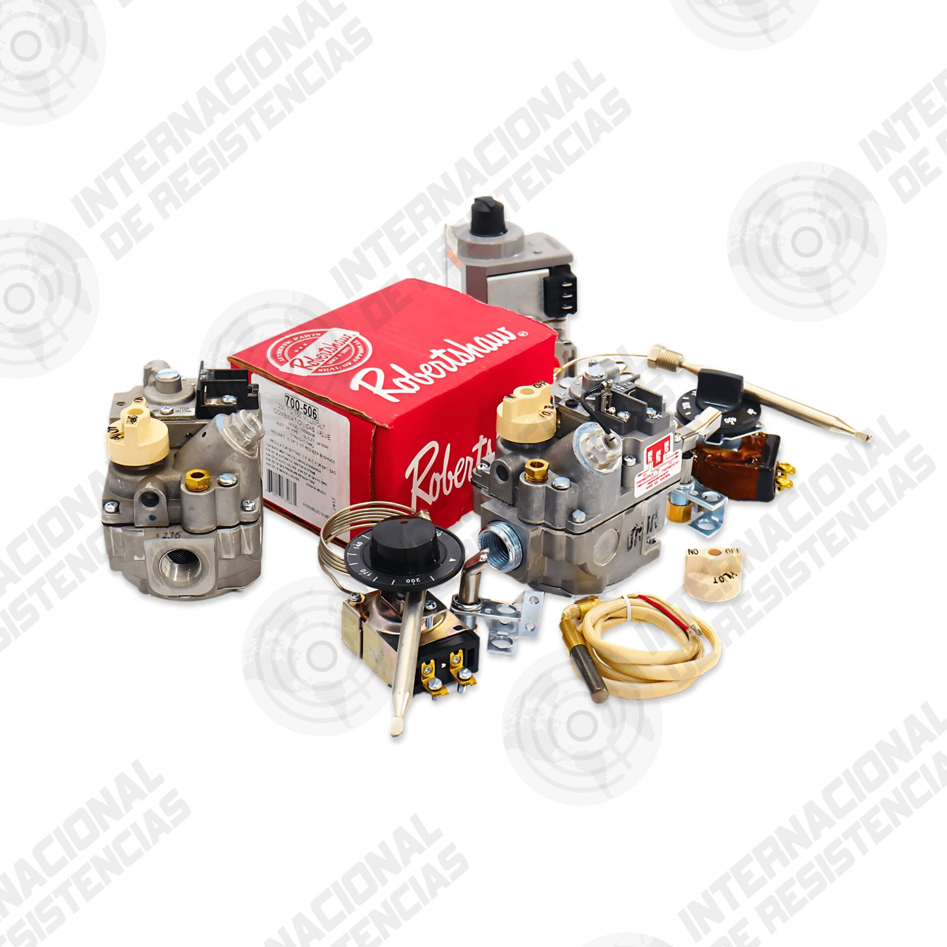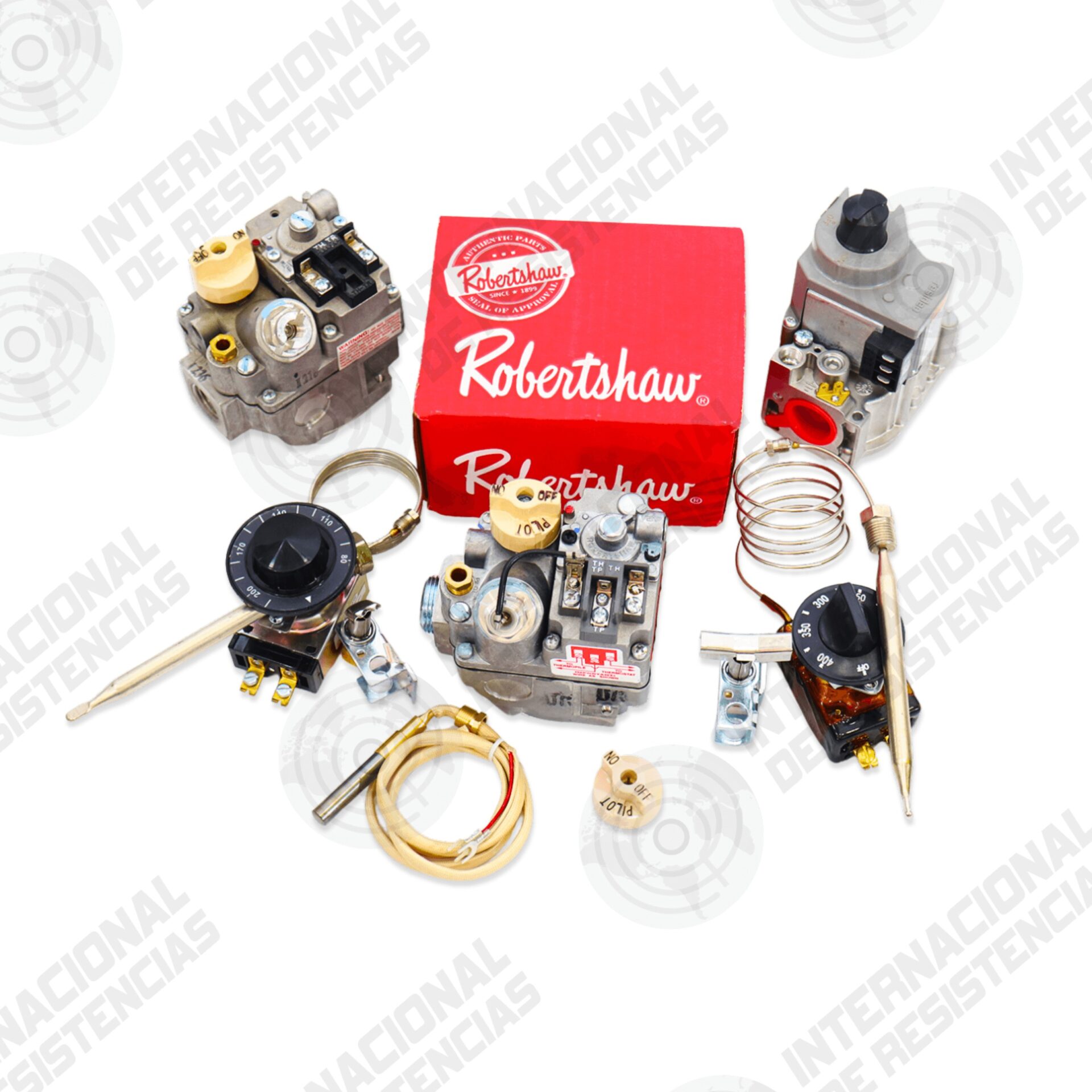 Kit de repuestos Robertshaw para freidora: válvula de gas, termostatos, piloto, termocupla, perilla y controles. Calidad OEM para reparación y mantenimiento.