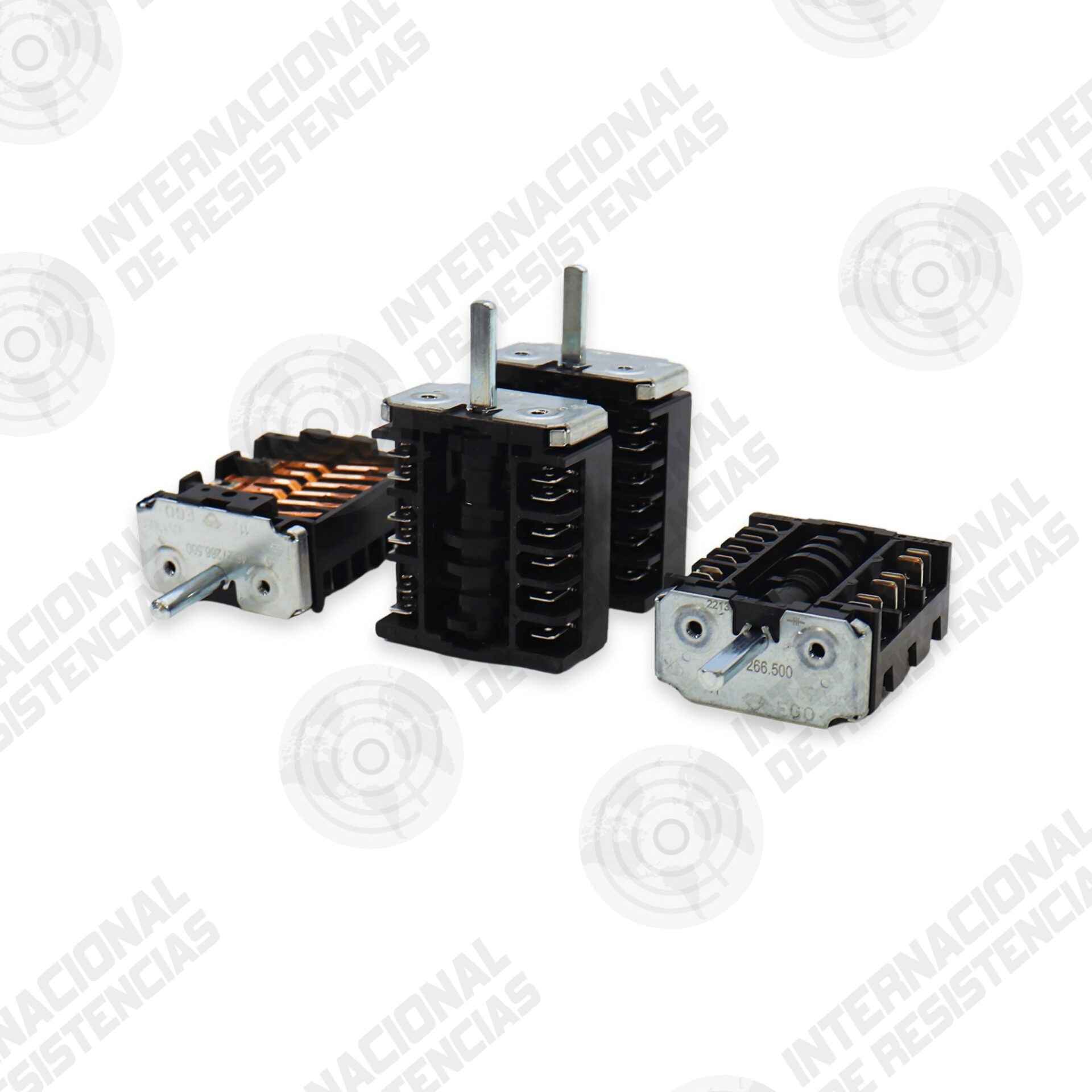 Switch E.G.O. 6-posiciones — SPST multiway, contactos de cobre, eje 6 mm, montaje panel, referencia alemana.