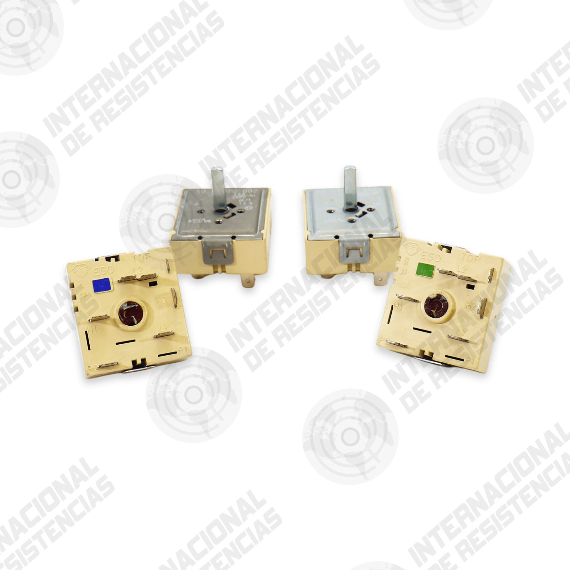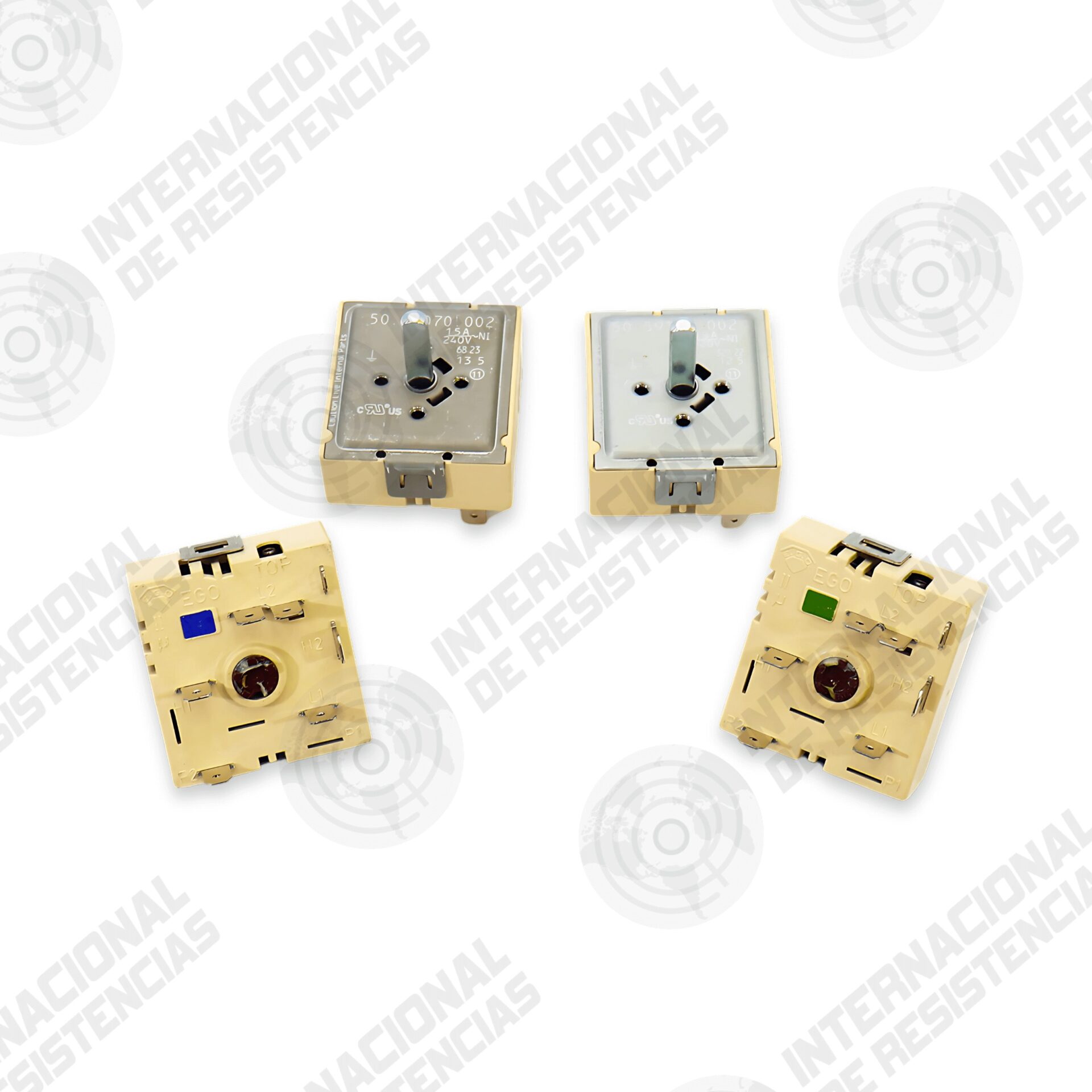 Switch infinito E.G.O. 110 V/220 V para estufas y hornos. Regulador continuo de potencia, duradero y preciso, sin posiciones fijas.